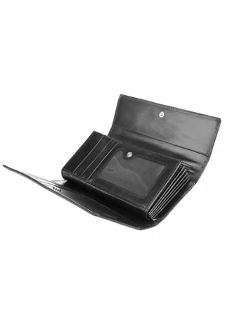 Ausgiebig Stauraum für Ihre wichtigsten Dinge beim Stadtbummel bietet die Damen echt Leder Geldbörse von Bagan allemal. Das anschmiegsame Leder kombiniert mit zahlreichen Fächervariationen bringt Ordnung und Übersichtlichkeit für Kreditkarten, Geld, Unterlagen und Fotos in Ihr neues Lieblingsportemonnaie. * 100% Rindleder * schlichtes Außendesign * Trifold-Design * Hauptfach mit Druckknopfverschluss * Münzfach mit Reißverschluss * 1 Sichtfach * 6 Scheinfächer & 8 Kartenfächer * 2 Steckfächer innen * 1 Reißverschlussfach innen * praktische Schlaufe auf der Rückseite * dezente Logoprägung auf der Front