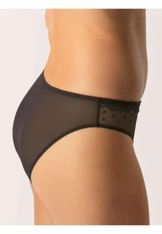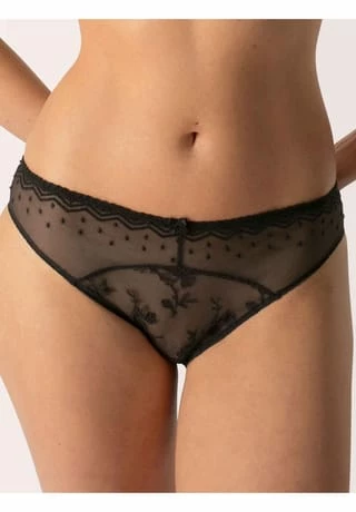– Slip mit Stickerei und Spitze – aus leichter Mikrofaser – elastischer Bund, mit grafischer Bordüre – Rosen-Details – transparenter Tüll – Schambereich blickdicht – Zwickel aus Baumwolle