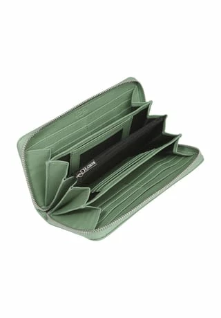 Die Damengeldbörse FILIPPA setzt auf einen spannenden Twist. Der cleanen Außenseite mit der dezenten LabelPrägung und einem Reißverschlussfach an der Rückseite steht eine umfangreiche Innenausstattung gegenüber. Ein Münzfach, vier Geldschein, zehn Kartenfächer und ein Sichtfach bieten ausreichend Platz, um alles Notwendige übersichtlich zu verstauen. Sowohl an der Außen
