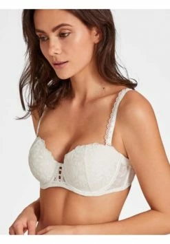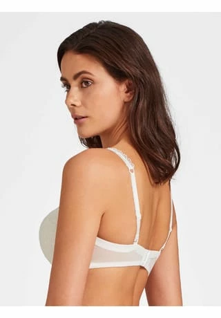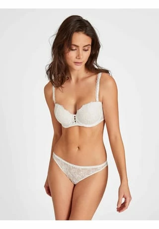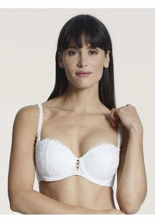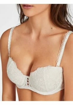 – Bandeau-BH in Komfort-Schnittform – blickdichte Halbschalen-Cups mit stabilisierender Mittelnaht – Cups mit floraler Cornerly-Stickerei überzogen – eingenähte Bügel – hoher Mittelsteg mit durchbrochener Guipure-Borte – breite Verarbeitung der Seiten und Rückenpartie – längenverstellbare, abnehmbare Träger mit Guipure-Spitze – zweireihiger, 3-fach verstellbarer Häkchenverschluss