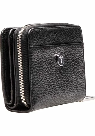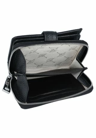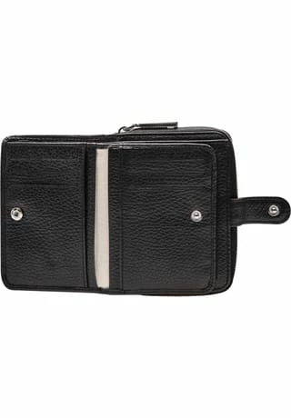 6 Chipkartenfächer, 2 Steckfächer, 1 Sichtfach, 1 Geldscheinfach mit Druckknopf