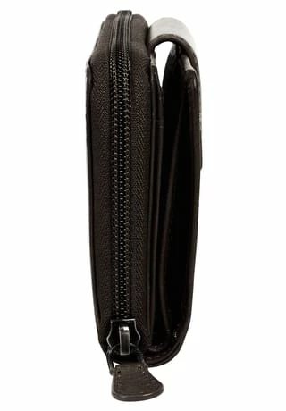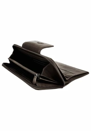 Diese Leder Geldbörse im Querformat von Klondike 1896 erfüllt Ihre Bedürfnisse! Die 2-teilung des Portemonnaies im Vintage Look sorgt für Übersicht sowie für einen schnellen Zugriff auf Ihre Wertgegenstände. Ein umlaufender Reißverschluss sichert Münzfach sowie Geldscheinfächer. Daneben können Sie all Ihre Kunden- und Kreditkarten in 20 Kartenfächern verwahren. Maximale Sicherheit bietet der integrierte RFID-Schutz gegen nicht autorisiertes Auslesen Ihrer Kartendaten. Je nachdem, was Sie aus Ihrer zeitlosen Geldbörse benötigen, können Sie unabhängig voneinander Bargeld- oder Kartenteil öffnen! * RFID-Schutz gegen nicht autorisierten Zugriff via Scan * 1 Münzfach mit Reißverschluss * 2 Scheinfächer innen * 24 Kartenfächer innen * 8 Steckfächer innen * 1 großes Steckfach innen * dezente Logoprägung an der Vorderseite * umlaufender Reißverschluss