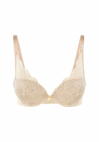 Klassische BH-Konstruktion mit runden Cups und transparenter, sanft schimmernder Spitze