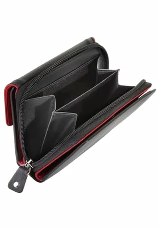 Leder Damen Geldbörse im Detail: * erstklassiges Rindleder * 2 getrennte Innenbereiche mit Druckknopfverschlüssen * 2 üppige Scheinfächer * 15 Kartenfächer * 1 praktisches Netzfach * großes Münzfach mit umlaufendem Reißverschluss * dezente, schicke Logo-Applikation auf der Außenseite